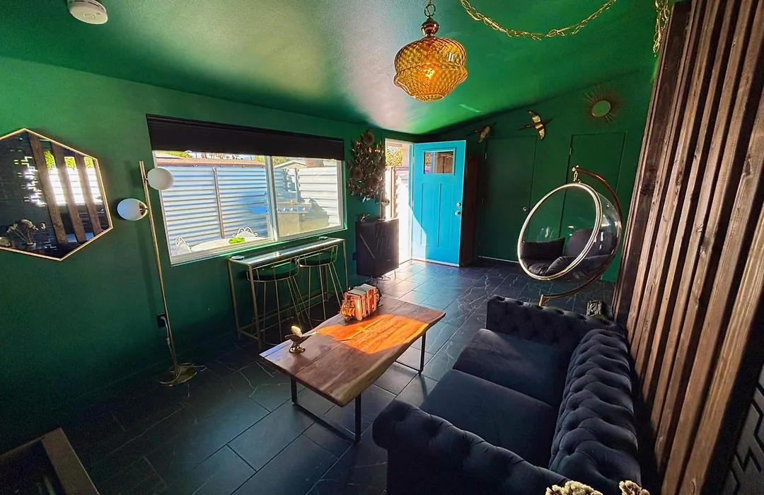 1959 Mid-Century Emerald Eclectic Palm Springs villa is located 10 minutes' drive from Desert Highland Park and invites guests to enjoy a patio.