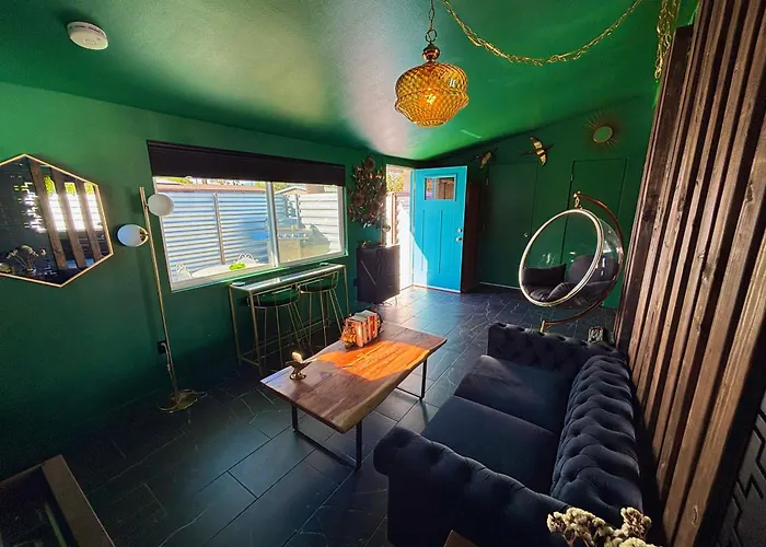 This Palm Springs accommodation includes an outdoor dining area with coffee and tea making machines, a fridge, and kitchenware. Located within reach of 1959 Mid-Century Emerald Eclectic villa, Paul Bar / Food serves American cuisine. 1959 Mid-Century Emerald Eclectic villa is also 5 km from Palm Springs International airport.